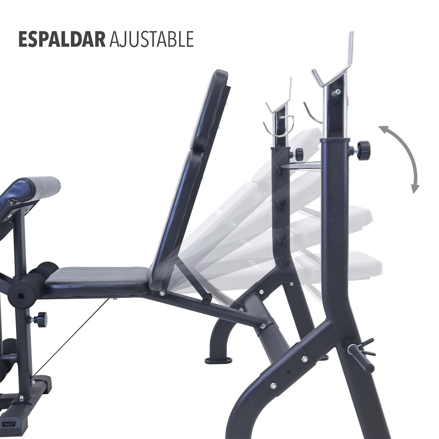 Banco de trabajo múltiple para realizar trabajo de brazos, pierna, pecho, hombro y abdomen, brindando versatilidad incomparable para variedad de ejercicios.
