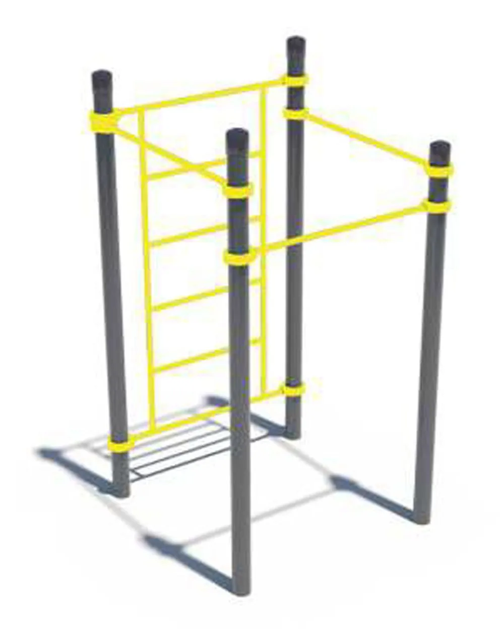 El complejo consta de cuatro columnas verticales de diferente altura, tres barras transversales de 1200 mm de longitud y pared sueca. La altura de la pared sueca es de 2000 mm, y ancho de 1200 mm. La construcción se asegura con abrazaderas de hierro.