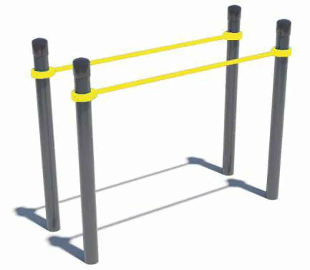 La construcción consta de cuatro columnas verticales y dos barras transversales horizontales. La longitud de la barra transversal es de 1500 mm. La distancia entre las barras paralelas es de 700 mm. Las barras transversales se aseguran a las columnas con abrazaderas de hierro a una altura de 1300 mm desde la base.