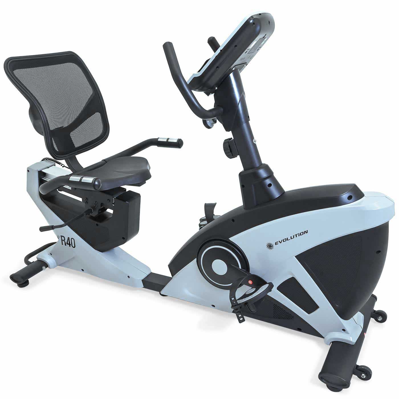 Active todo su cuerpo en la bicicleta recumbent EVO R40. Realice ejercicios cardiovasculares de forma cómoda, es ideal para disminuir el impacto en articulaciones de tobillo, rodillas y cadera, ya que la posición reclinada del cuerpo crea un perfil frontal más pequeño, lo que aumenta la eficiencia y maximiza la velocidad para una condición física y la salud cardiovascular ideal.