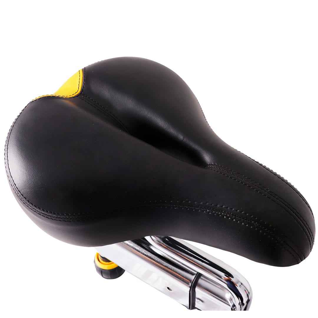 El asiento acolchado con resortes mejora notablemente la comodidad, reduciendo el impacto y la fatiga en sesiones largas. Su diseño moderno incorpora un carenaje protector anti-sudor que contribuye a la durabilidad del equipo, mientras que las rodachinas facilitan su desplazamiento dentro del espacio de entrenamiento.
