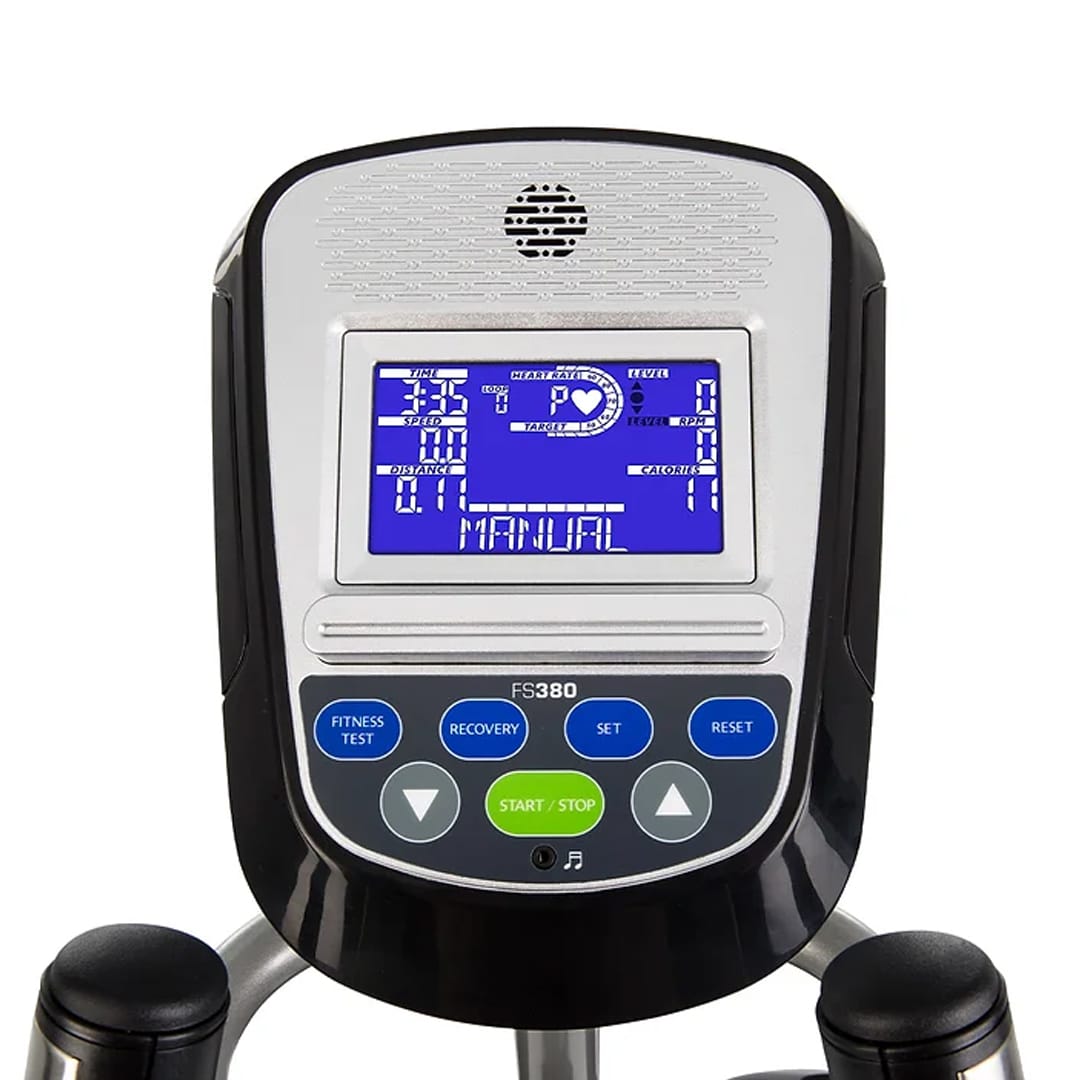 La FS380 incorpora pedales sobredimensionados con un Q-Factor reducido de 5,1 cm y una declinación interna de 2°, lo que favorece una postura natural y una alineación óptima del cuerpo, reduciendo el impacto en las articulaciones. Su longitud de zancada de 46 cm garantiza un movimiento fluido y cómodo en cada sesión.