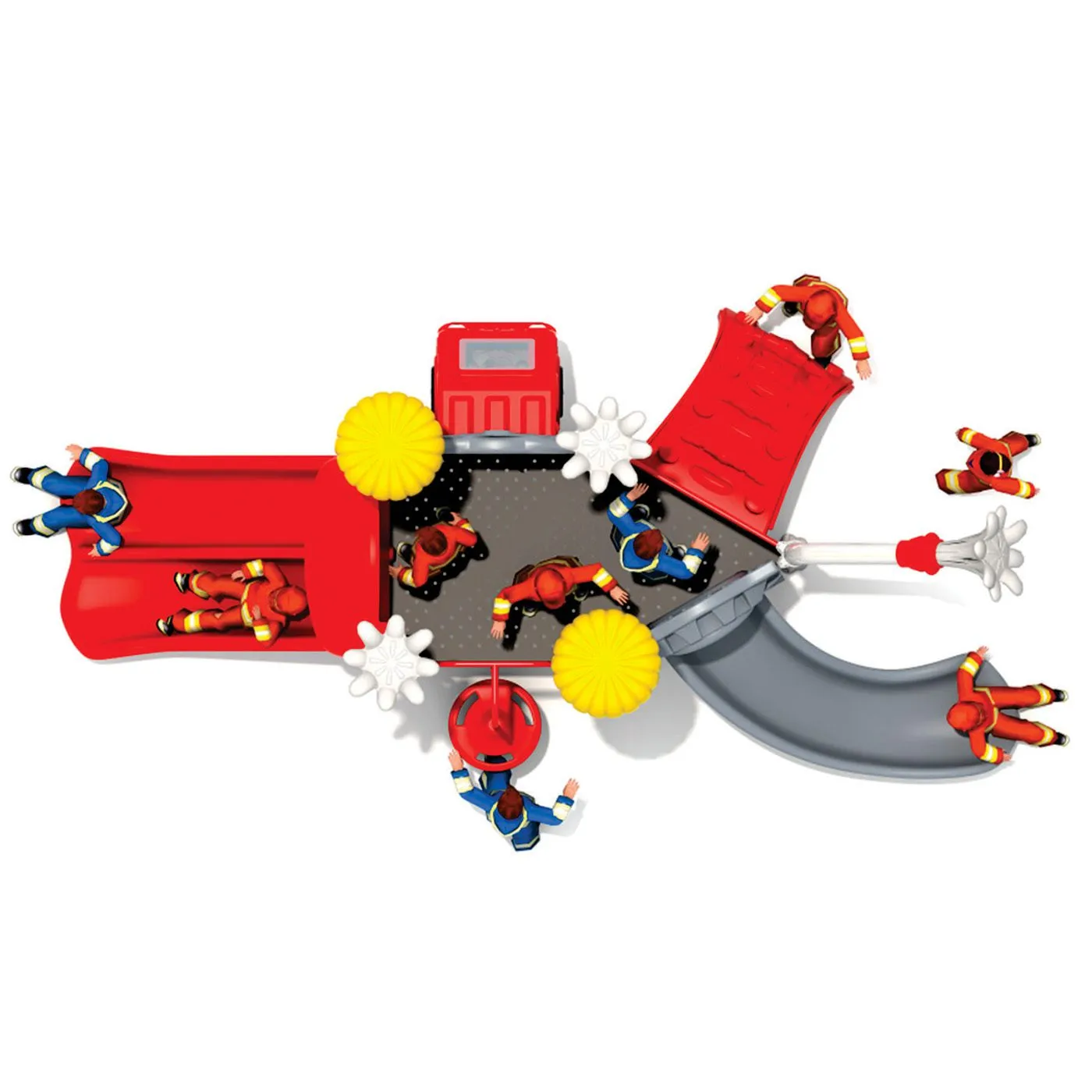 Listos para la diversión preparate en la estación de bomberos para apagar los incendios del vecindario. Parque de plástico fabricado en LLDPE-polietileno de baja densidad, con anti-UV, garantizando una mayor durabilidad de color frente a condiciones exteriores. Es un parque liviano de fácil limpieza, mantenimiento y gran durabilidad. Aquí los niños pueden promover el desarrollo muscular, la flexibilidad, la coordinación, el equilibrio, el desarrollo social y la actividad física.