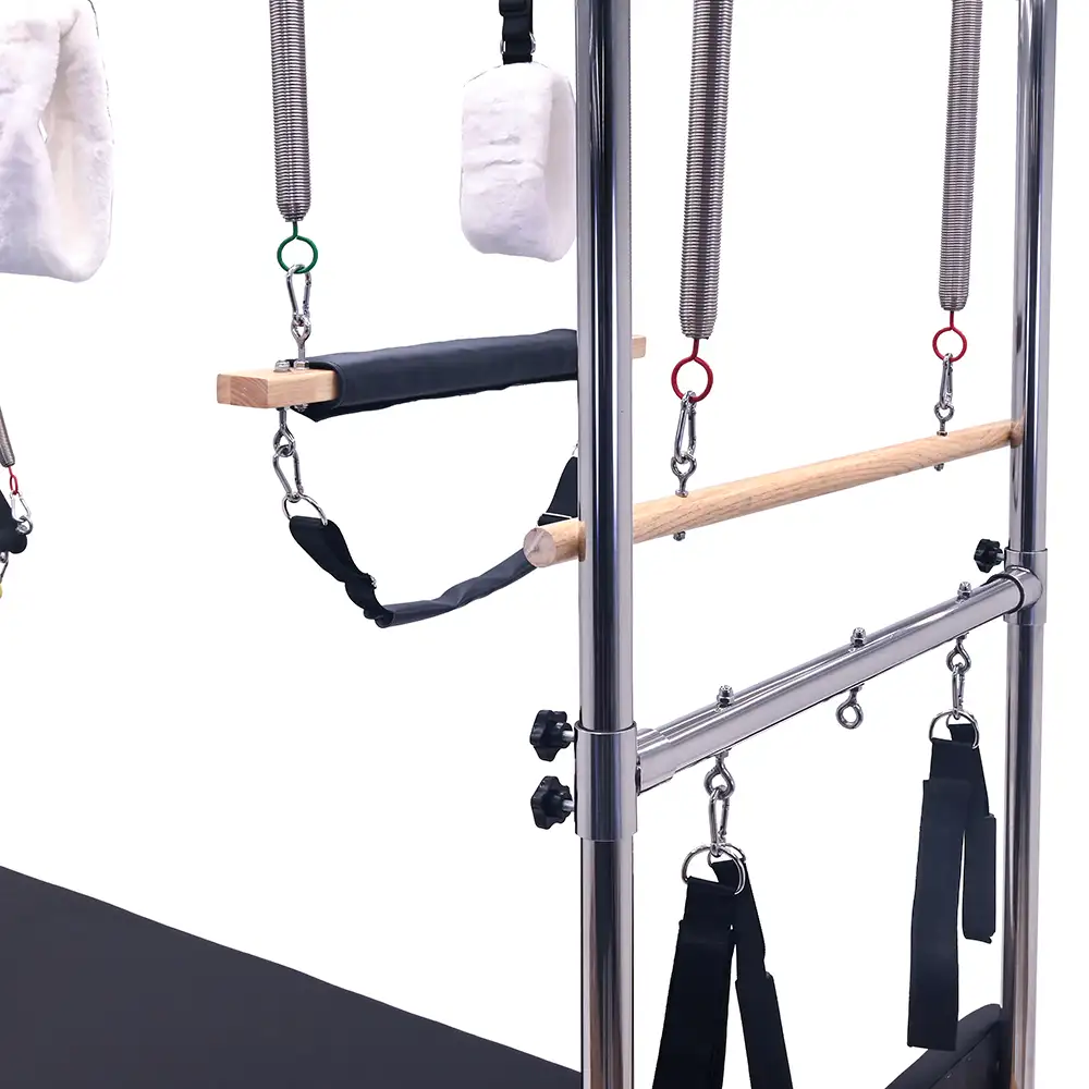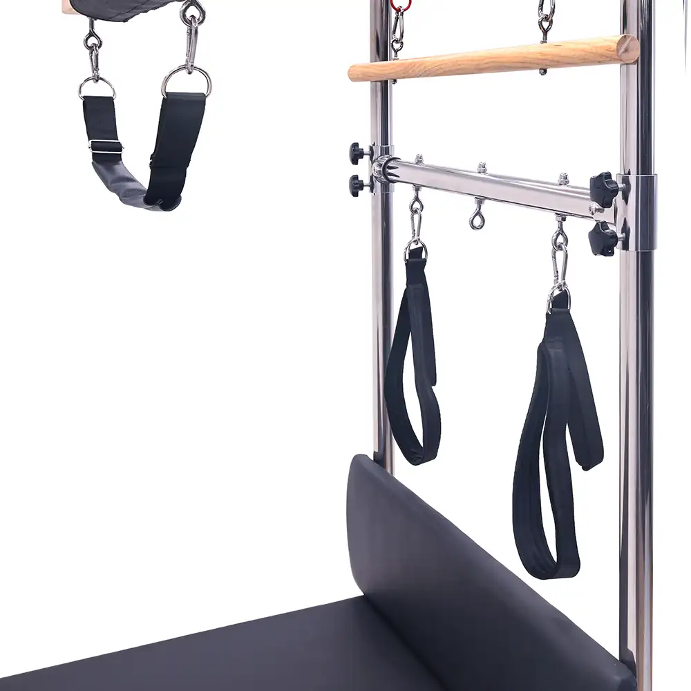 Está diseñada para ofrecer un entrenamiento completo y eficiente. Su estructura robusta proporciona estabilidad y seguridad, ideal para ejercicios de fuerza, flexibilidad y rehabilitación. Equipada con barras, resortes y accesorios ajustables, permite una amplia variedad de movimientos para mejorar el control corporal y la postura. Perfecta para estudios de pilates o entrenamientos en casa, esta máquina garantiza comodidad y rendimiento profesional. Equipos de pilates de alta calidad para potenciar tu bienestar y condición física.
