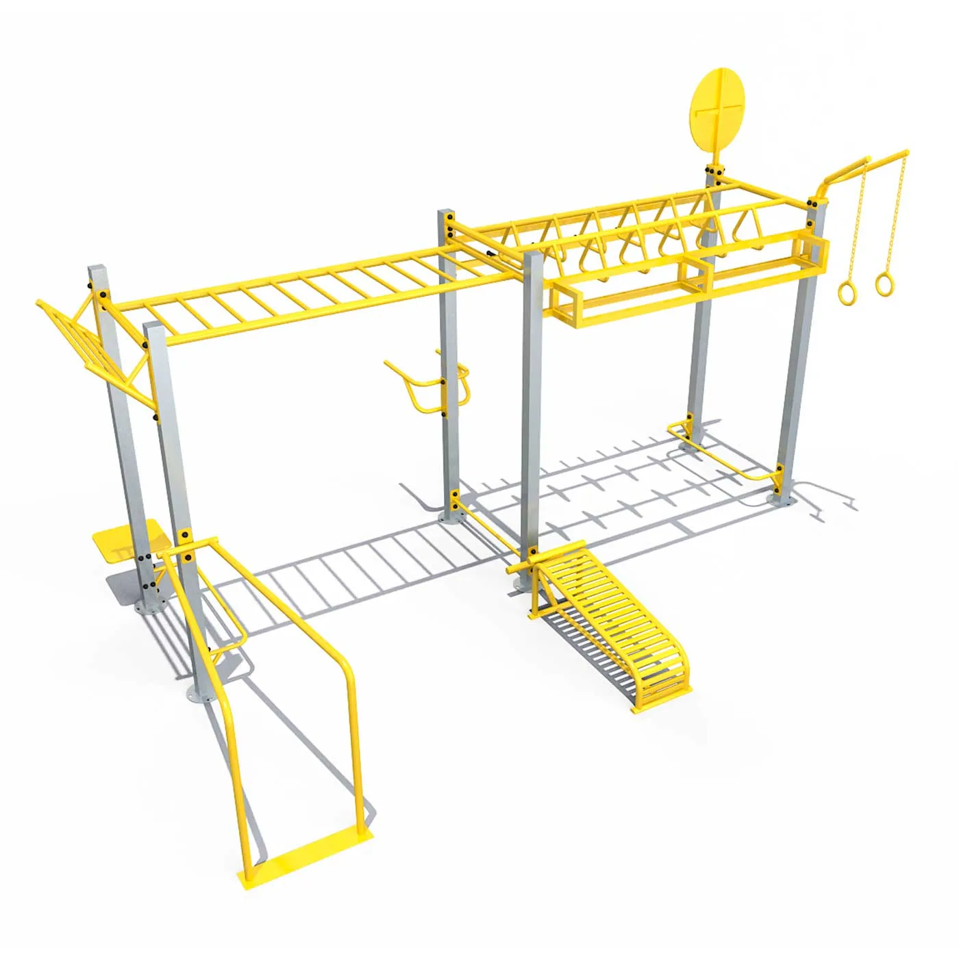 El circuito Calistenia cuenta con barras paralelas, banco abdominal, pantalla de rebote y barras para desplazarse. Todos estos elementos permiten trabajar la mayoría de los grupos musculares, además de mejorar la fuerza muscular, aumentar el nivel de resistencia y quemar calorías.