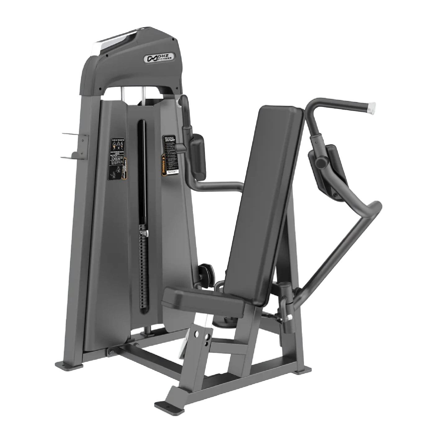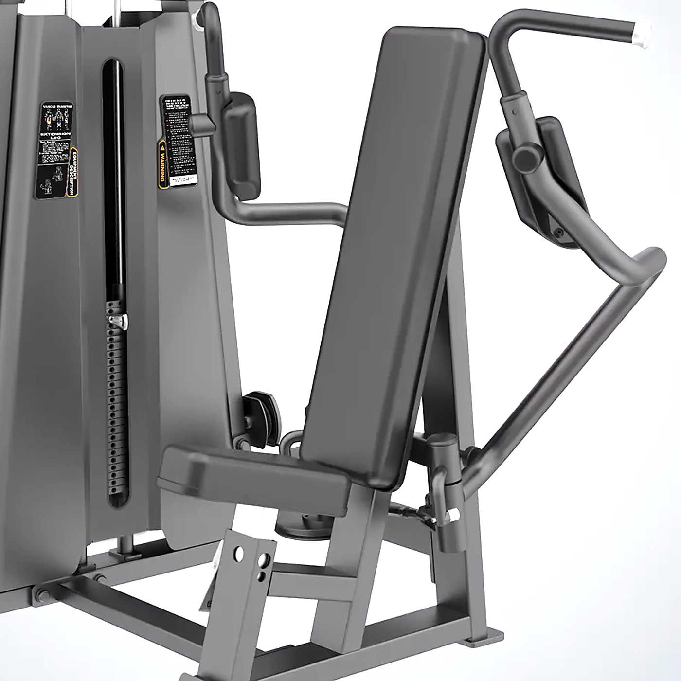 La almohadilla del asiento ajustable permite adaptar la posición de pivote del pecho a diferentes usuarios, optimizando la efectividad del ejercicio. Gracias a las coderas que transfieren la fuerza directamente a los músculos deseados, lograrás un desarrollo muscular preciso. Además, la minimización de la rotación externa del brazo reduce la tensión en los hombros, priorizando tu seguridad.
